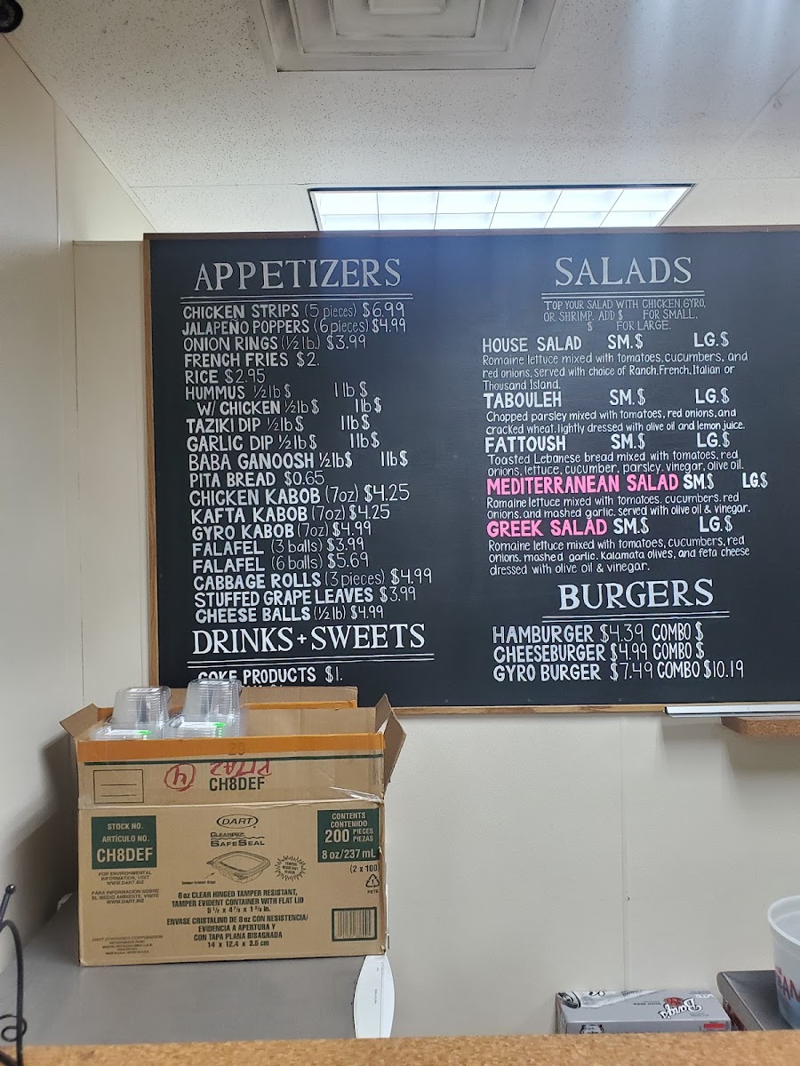 Ground chickpeas, garlic, and secret spices formed into balls and fried. served with a drink, Rice, Pita Bread and one side. Sides include choice of Hummus, Baba Ghanoush, French Fries, Mediterranean Salad or House salad. Add grilled vegetables $2.29.