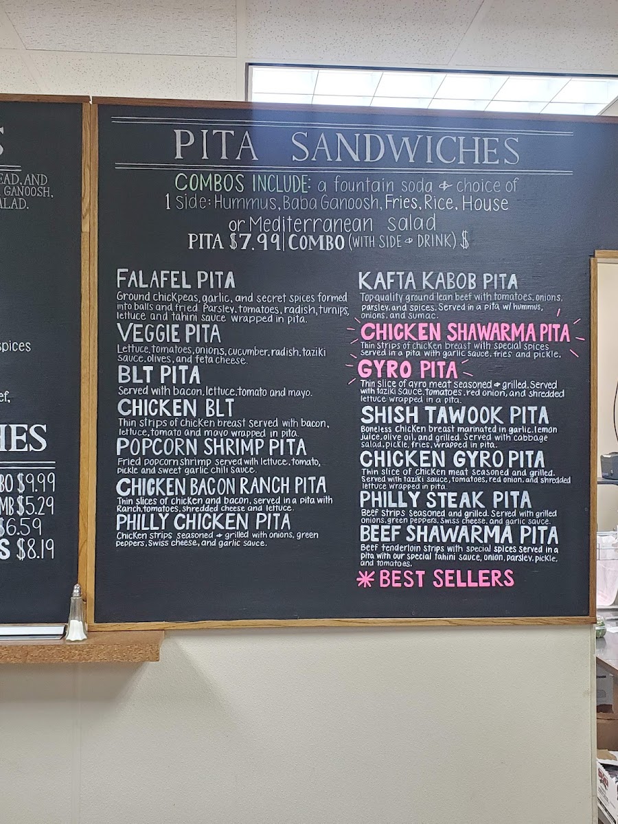 Top quality ground lean beef with tomatoes, onions, parsley, and spices. Wrapped in a pita with hummus, grilled onions and tomatoes